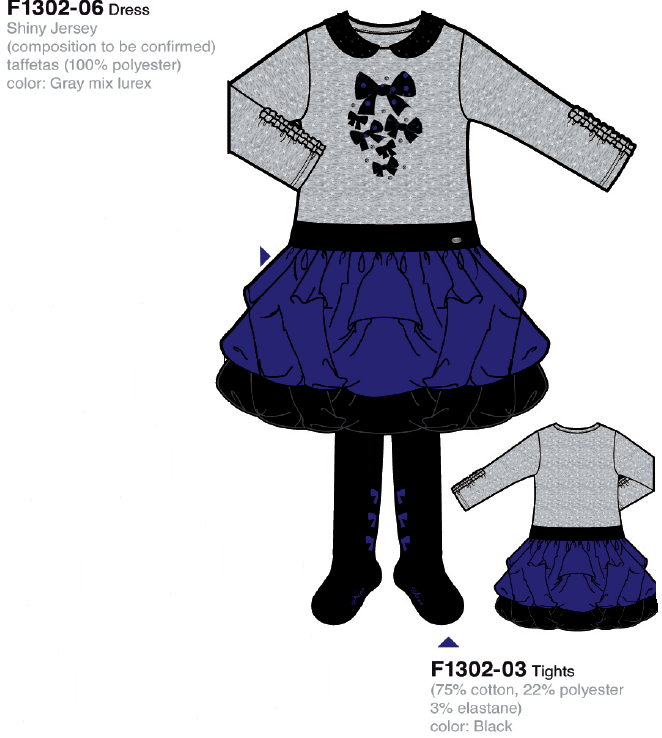 F 1302-06 Платье для девочки 3х года, Grey mix lurex 2 720,00р. 499,00р.
