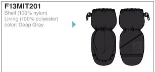 F 13 MIT 201 Варежки с подкладкой из искуственного меха для мальчика 100% нэйлон, 100% п/э 4/6х лет, Deep gray 378р. 227р.