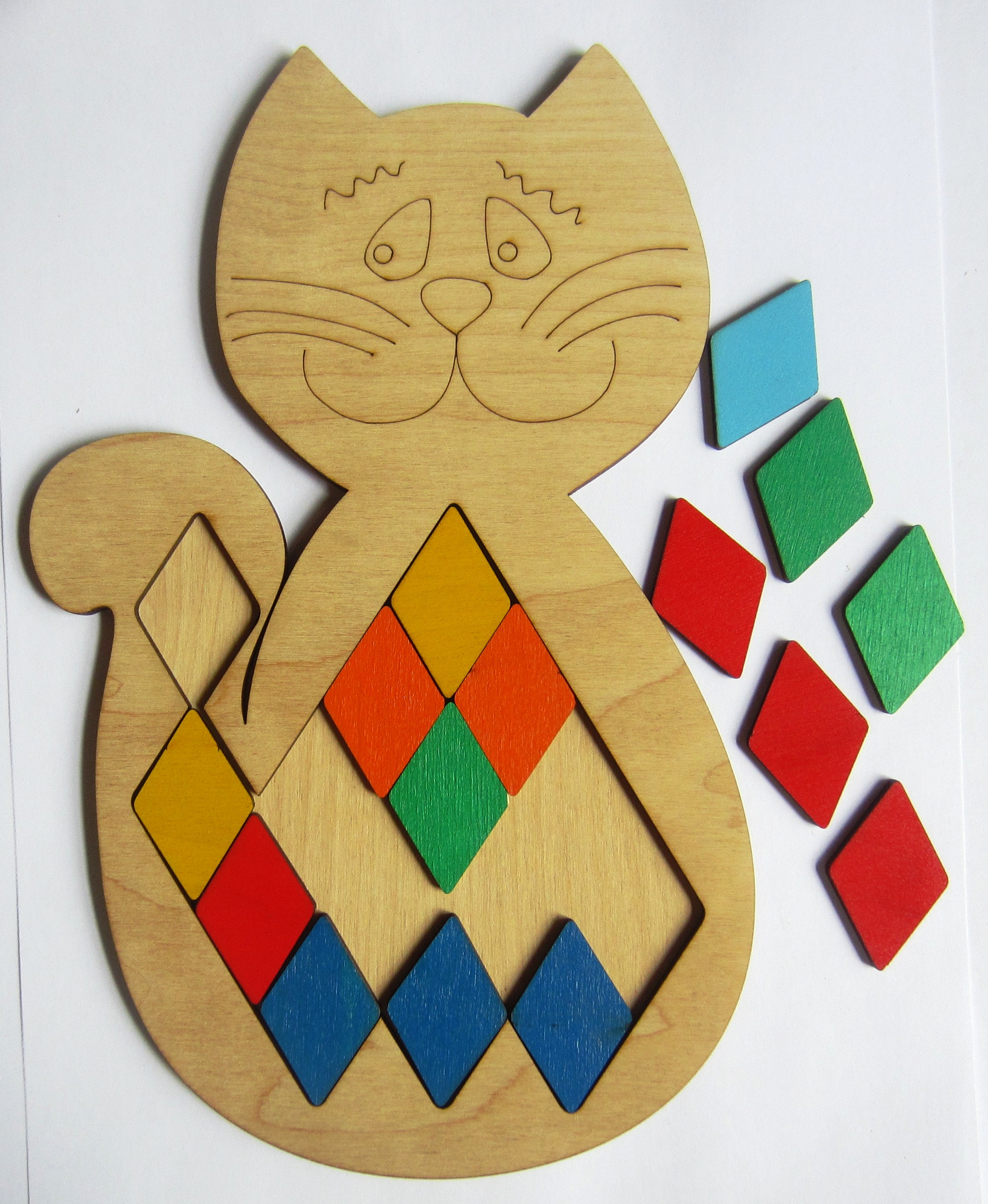 1. Выкладывать из ромбиков различные силуэты животных, транспорта и других знакомых для ребенка предметов;